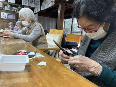 今日は来年の干支「辰」の押し絵の続きを行います