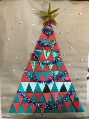 先日 製作した幸望庵のお部屋のクリスマスツリー壁画がちょっぴりドレスアップしました✨