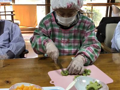桃、みかん、キウイフルーツを小さくカット美容院 (鋏)美容院 (鋏)美容院 (鋏)