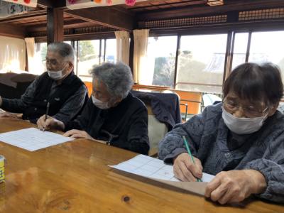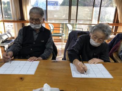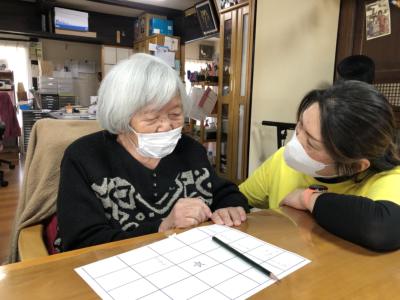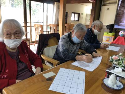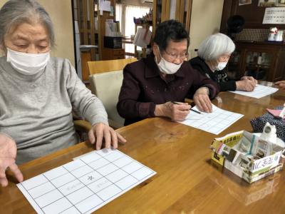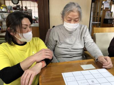 仲間のワードを聞いて、マス目の中に言葉を書き入れていく皆さん!