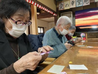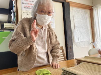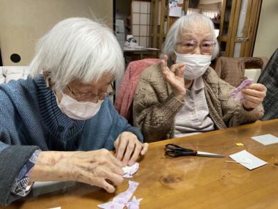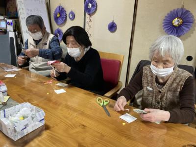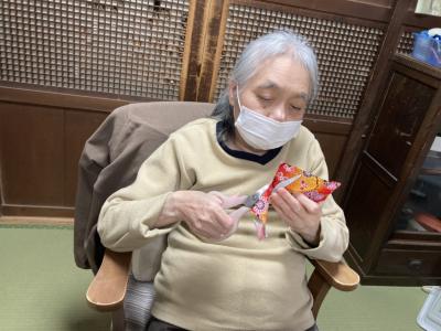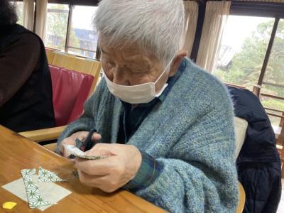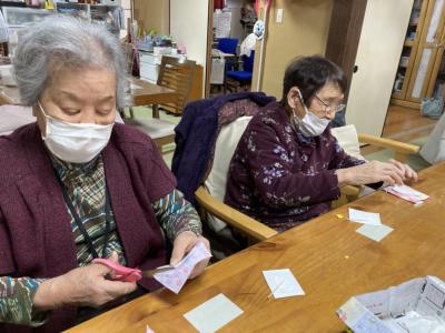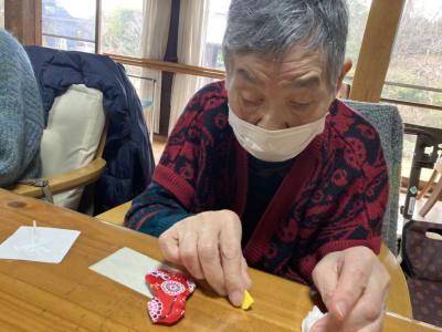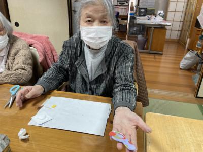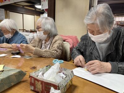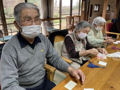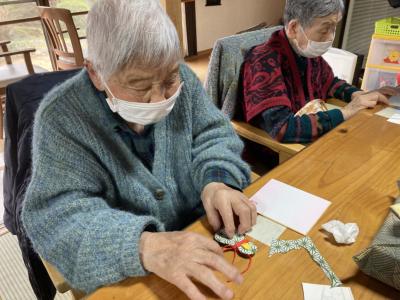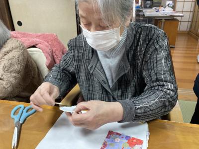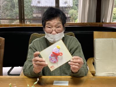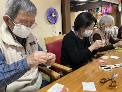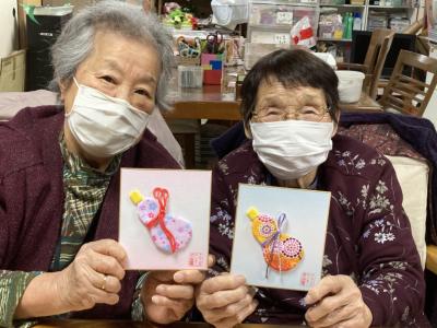 午後はちりめんを使ったひょうたんの壁飾りを作りますムード