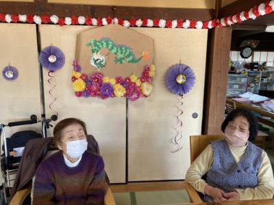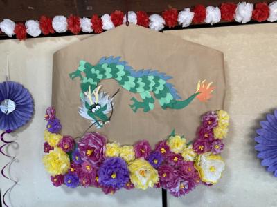 2024年の干支の辰とお花紙で作る牡丹で新年を祝う