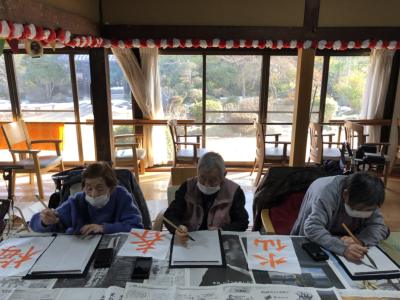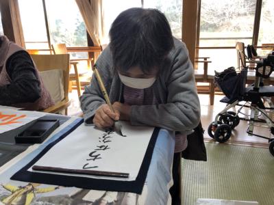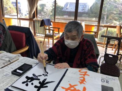 お部屋に広がる墨の香りを感じながら、心穏やかに書道を行う皆さんの姿からは