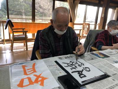 各々 季語やご自分で考えた言葉の色々を半紙にしたためていました