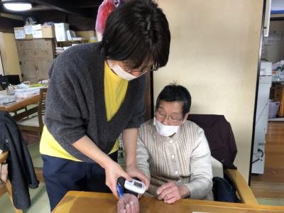 来庵時には、看護師による利用者様一人一人のバイタルチェック