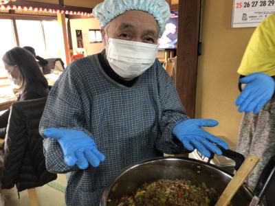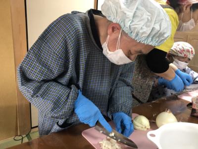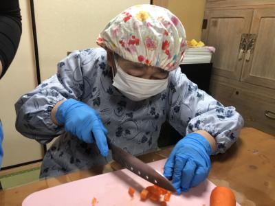 皆さんが食材をカットする音がリズミカルに聞こえて来ていまするんるん (音符)