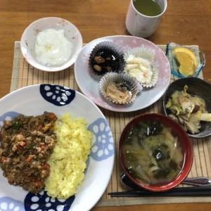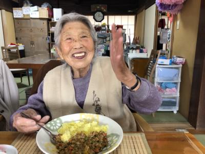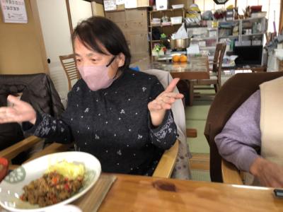 ちょっと変わった黄色いライスに目を丸くする母(@_@)あせあせ (飛び散る汗)