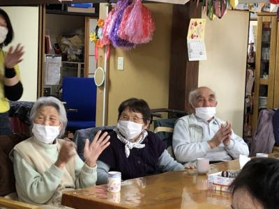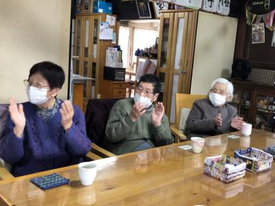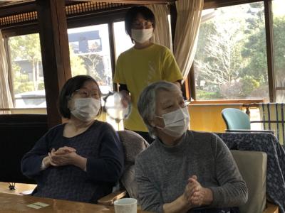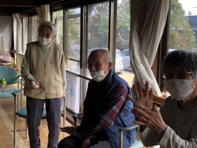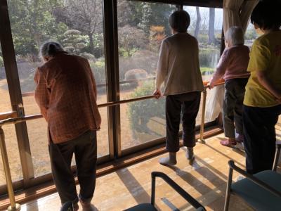 縁側では順番に個別機能訓練手 (グー)わーい (嬉しい顔)手 (グー)