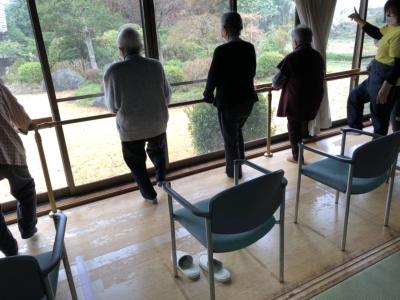 午前中は縁側で個別機能訓練や