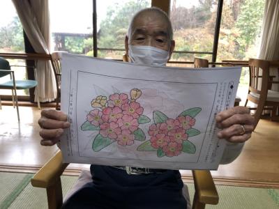 お父さんの塗り絵が完成しました