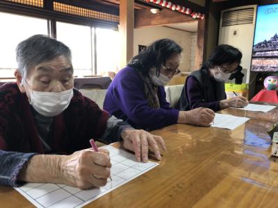 お仲間が言って下さった地名を、聞き漏らさないよう皆さん一生懸命にビンゴの用紙に