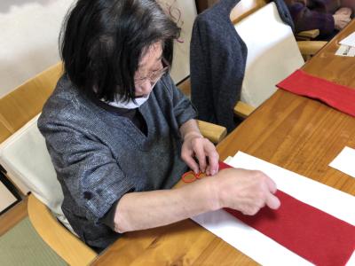 ボンドを付けて半分に貼り合わせてタペストリー作り!
