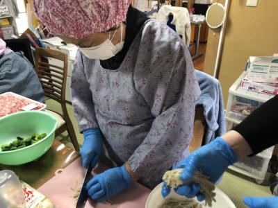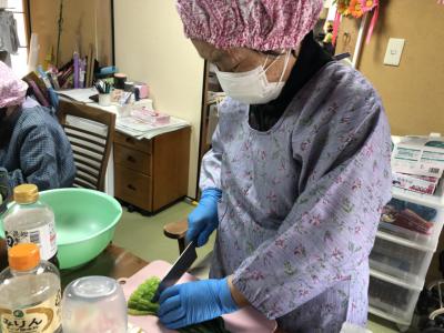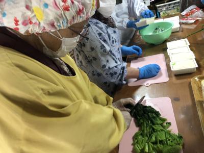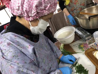 今日は料理上手の母達の協力を得て昼食作り