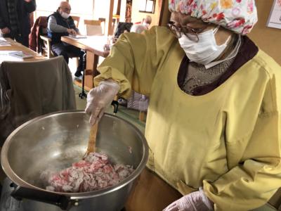 大きな鍋でグツグツ、グツグツ煮込んで肉豆腐作り