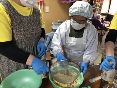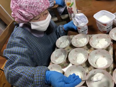 盛り付けも母達にお任せ