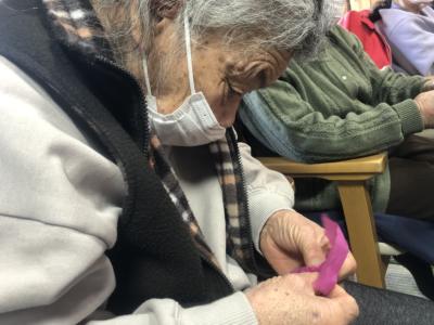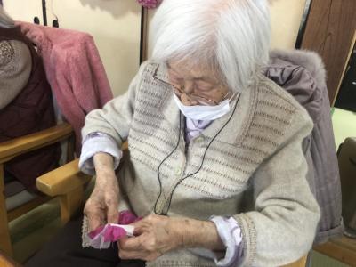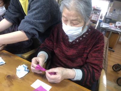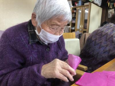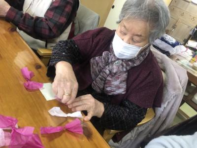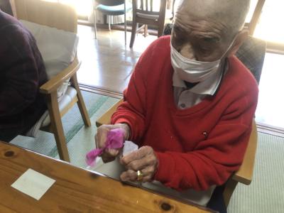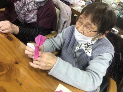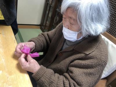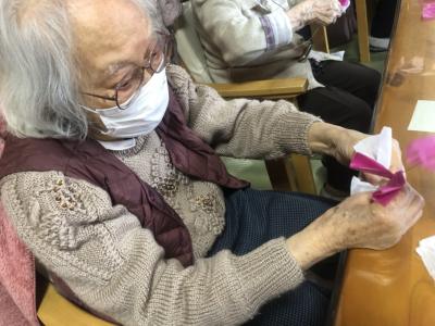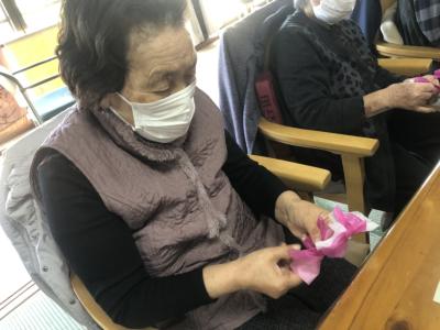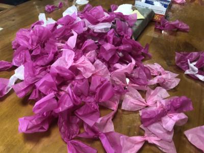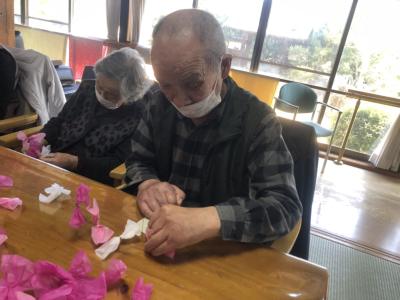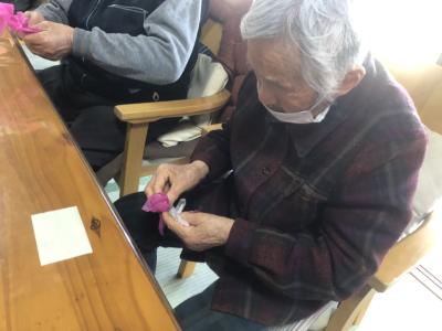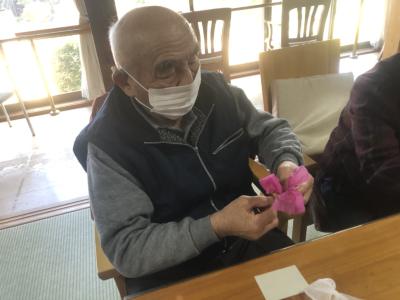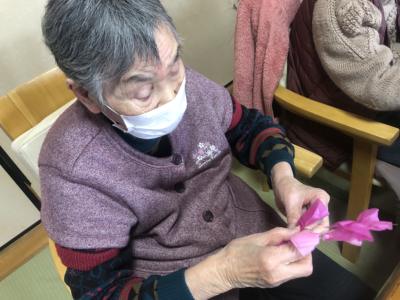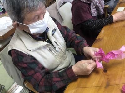 お花紙の真ん中をクルっと捻じるとお花の完成です🌸