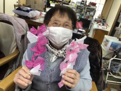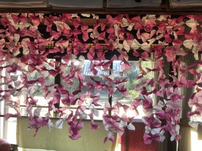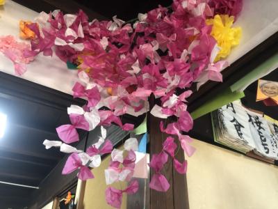 完成したしだれ桜をホールに飾っていきましょうね🌸🌸🌸