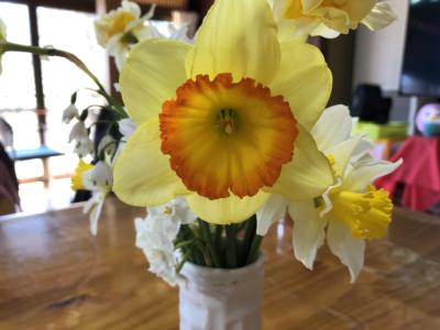父の庭に咲いた水仙を愛の幸望庵に持ってきて下さいました