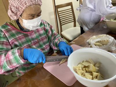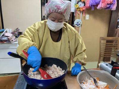今日は昼食作りです!入念な手洗いを済ませ、身支度を
