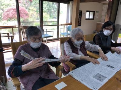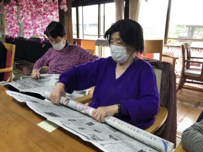 新聞紙でMy輪っかを作ります