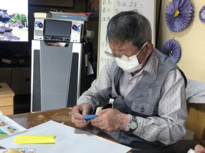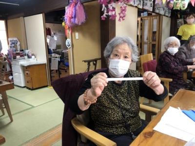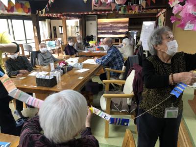 完成した鯉のぼりに紐を通し、飾ります🎏