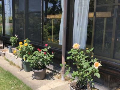 お部屋からも窓の外に鉢薔薇が咲き誇り皆さんの目を楽しませています
