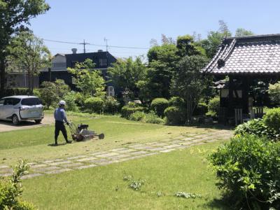 熱い中、庭師さんが芝刈りや除草作業を行なって下さています