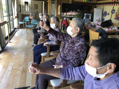 縁側では機能訓練に勤しむ皆さん