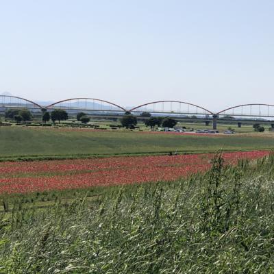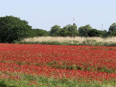 土手の上から眺めると、一面のポピー畑\(^o^)/