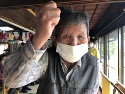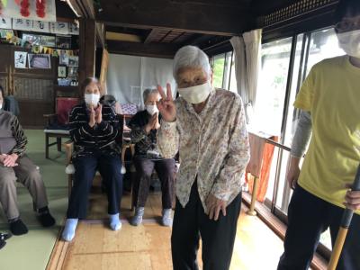 照れながらもしっかりとピースサインをされながら座席に戻る母の姿も