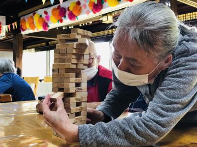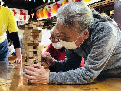 ジェンガゲームで盛り上がり