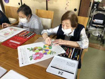 塗り絵は、脳の活性化、手指のリハビリ、ストレス解消になります