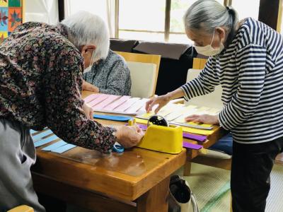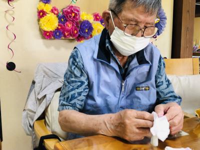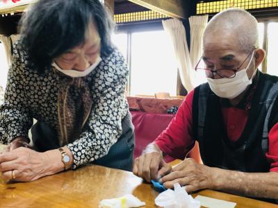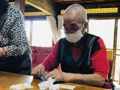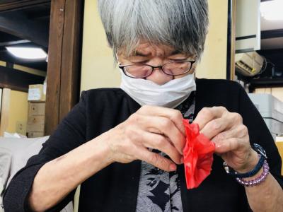 スタッフと一緒に折っているのは