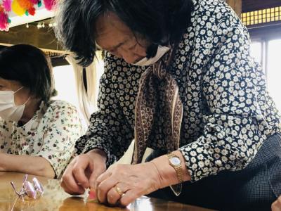 吹き流し部分に取り組む母たち
