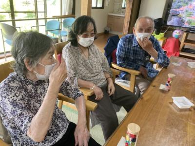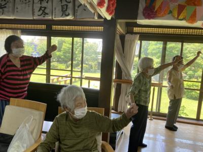 幸望庵では朝会で歌謡曲を聴きながら体操を行なっています