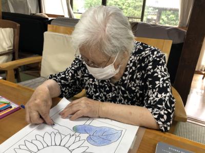 My色鉛筆を持参して塗られています