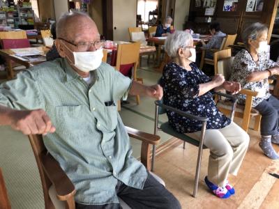 午前は縁側で機能訓練を行い、しっかりと身体を動かしました