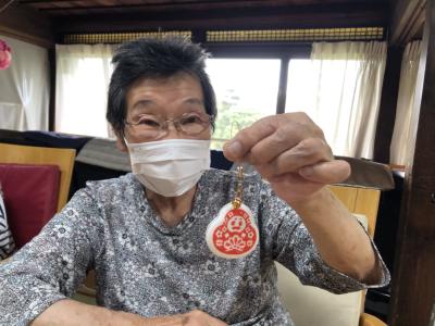 ストラップに鈴を付け、しっかりボンドで貼り合わせたら・・・