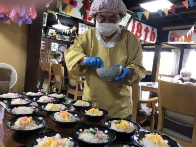 ピンク色のさくらでんぶも乗ってちらし寿司に彩りが加わりました✨
