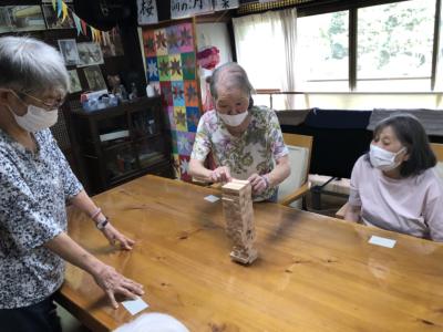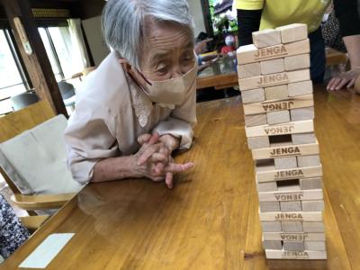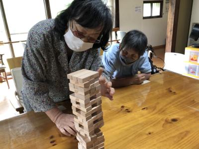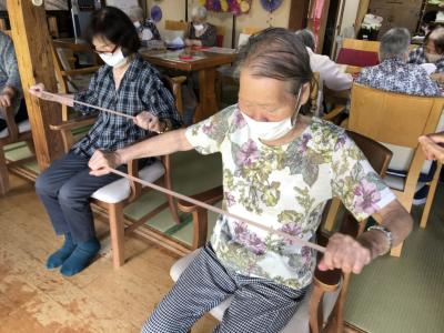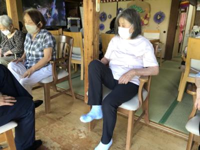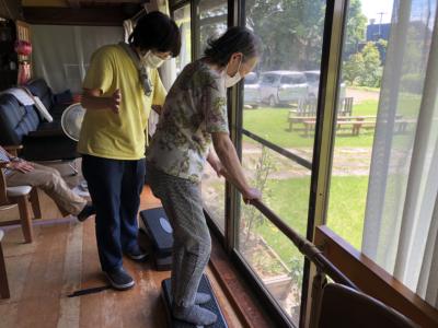 縁側では、りえちゃん指導の下しっかりと機能訓練を行っています