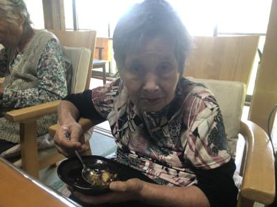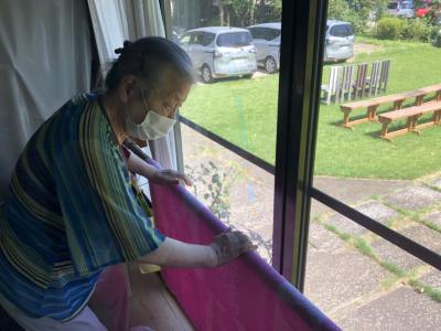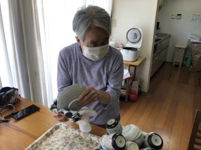 昼食後、食器拭きのお手伝いをしてくれる母です