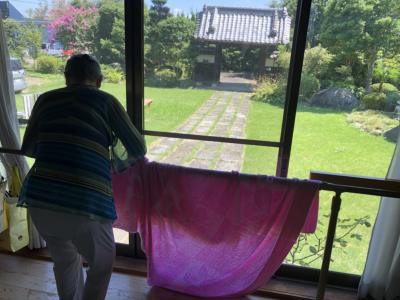 大きなタオルケットも綺麗にビシッと干しちゃう母