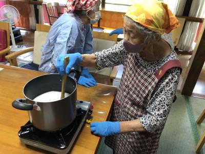 今日は、皆でこの材料を使って、皆でわらび餅を作ります