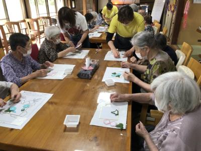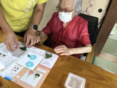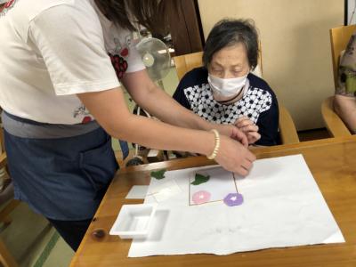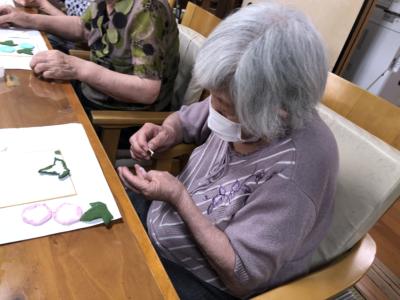 今日は先月から続いている、朝顔の押し絵を完成させましょうるんるん (音符)