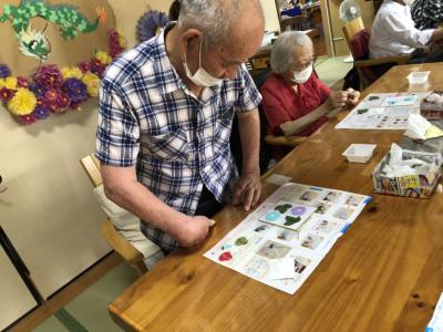 色紙に朝顔や葉っぱを飾っていきますよわーい (嬉しい顔)