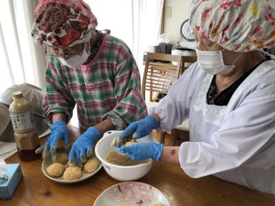 きな粉おはぎ用に、中に入れるあんこを丸めてくださる母
