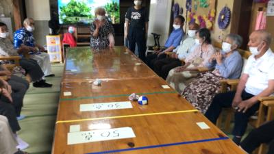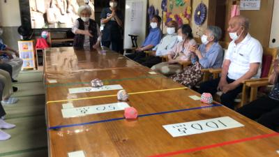 午後は、お手玉を投げて得点に入れるゲームdouble exclamation