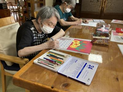 脳トレでは9月の暦や塗り絵に集中していました