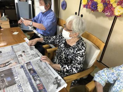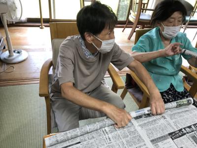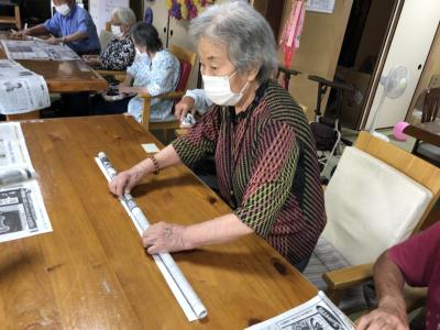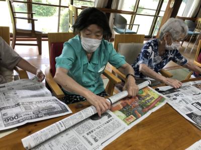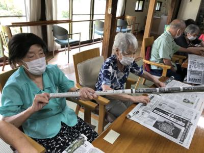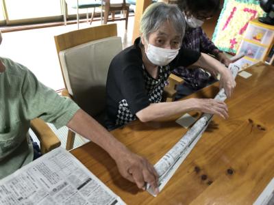 新聞紙で輪投げを作っていきますひらめき