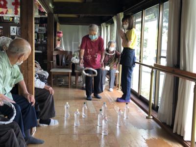 午後のレクリエーションは ぴかぴか (新しい)輪投げぴかぴか (新しい) です!